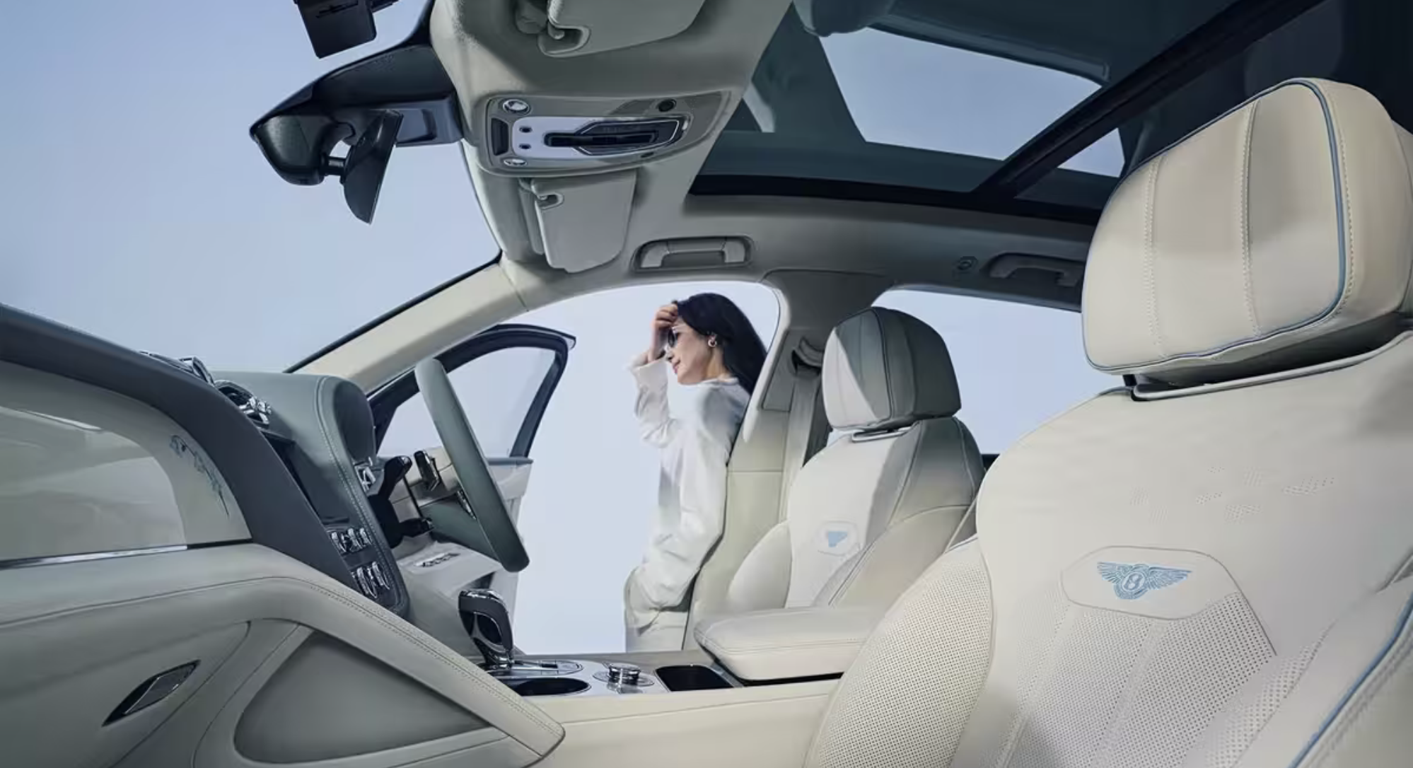 这台限量版的宾利添越Something Blue车内采用了大面积米白色的高档真皮材质铺陈,环抱式座舱四周加入了蓝色的花朵图案,整个内饰也以浅色系的皮革搭配,迎宾踏板上也会有Something Blue Collection的专属铭牌。科技感方面却与现款在售的宾利添越保持一致,标配了12.3英寸的全液晶仪表盘,带有10.9英寸的高清触控中控屏,操作流畅,支持Apple CarPlay和Android Auto手机互联,实现无缝的数字生态接入。还有HUD抬头显示系统,科技感与时俱进。车机采用了My Bentley App Studio。还配备了宾利Signature或顶级Naim for Bentley 20扬声器音响系统,提供殿堂级的听觉享受。