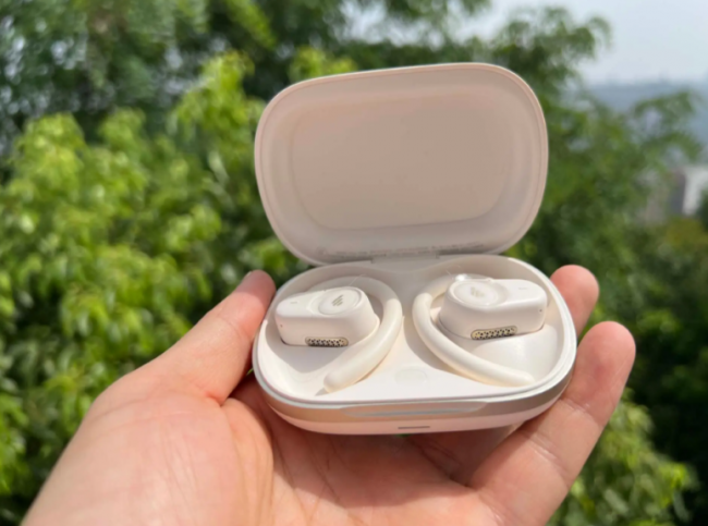开放式耳机哪个牌子好?这款耳机的C形桥结构基于超过一万个真人耳廓曲线数据调校,镍钛合金丝直径0.7毫米,外层覆盖通过SGS绿色认证的超亲肤液态硅胶。这套组合的工程目标是极其明确的:保证耳机在剧烈运动时不脱落。IP57防护等级进一步强化了它的运动属性。但也因此,它的佩戴逻辑和“无感”二字天然有距离:舒适水滴的体积在同级产品中偏大,对于不戴眼镜的用户来说影响不大,但对于眼镜族,镜腿和耳机尾仓会形成持续的轻微干涉,需要花几天时间找到最佳的共存角度。