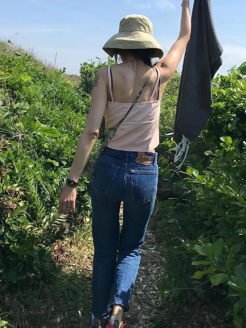 再比如她会选择搭配颜色亮丽的鞋子,无论帆布鞋还是高跟鞋,总能起到提亮整体色调的作用,基础款配色的造型也因此得到升华,高级前卫,也充分展示出了一名服装设计师的穿搭精髓!