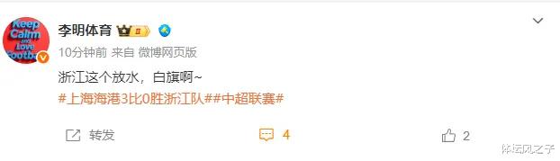 在比赛结束后,质疑声愈发强烈。博主李明体育甚至直言浙江队“放水”,不过博主魏老师也表示,无欲无求的球队在赛季末段缺乏战斗力是正常现象,但也不应站在道德制高点去苛责,只是像泰山队、西海岸、英博这样始终保持战斗精神的球队更值得称赞。