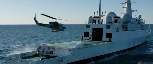 扎格罗斯还有一个飞行甲板和一个机库,现有图像显示,这艘船搭载了一艘阿古斯塔-贝尔AB212,这是根据意大利许可建造的贝尔212的一个版本,相当于美国军用UH-1N。搭载直升机是信号情报船的一个不寻常的特征,这表明该船还打算执行其他任务,或者直升机可能只是为了在长时间海上航行时提供后勤支持手段。另一方面,直升机也可用于提供一定程度的空中保护能力,这在船上没有其他武器的情况下尤其重要——尽管稍后该船仍可能安装一些轻型武器。另一种选择是为直升机配备光电吊舱或者雷达,增加可以收集情报的范围,并提供快速到达收集情报地区的方法。