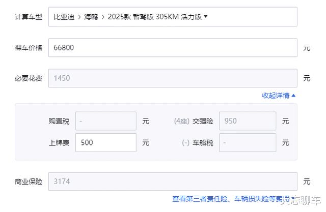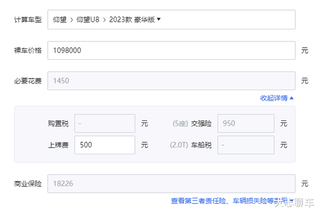 还有一点,就是保险费还便宜,我们还是拿比亚迪的海鸥来说,他的保险费是交强险950元+商业险3174元,而比亚迪高端车仰望U8,保险费却是950元+18226元的商业险,而造成这样的原因,除了车型价格外,也是因为保险公司会跟着数量来综合分析车型的保险费率,而用的人越多,保险公司分析就会越好了。
