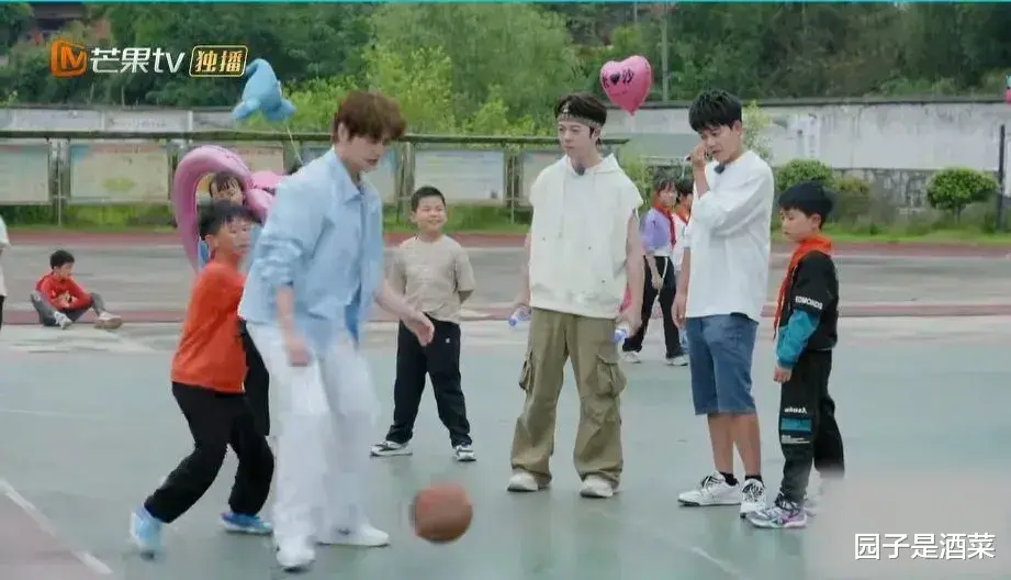 苏醒、王栎鑫、张远和小朋友们打篮球,认真的样子太好笑了。