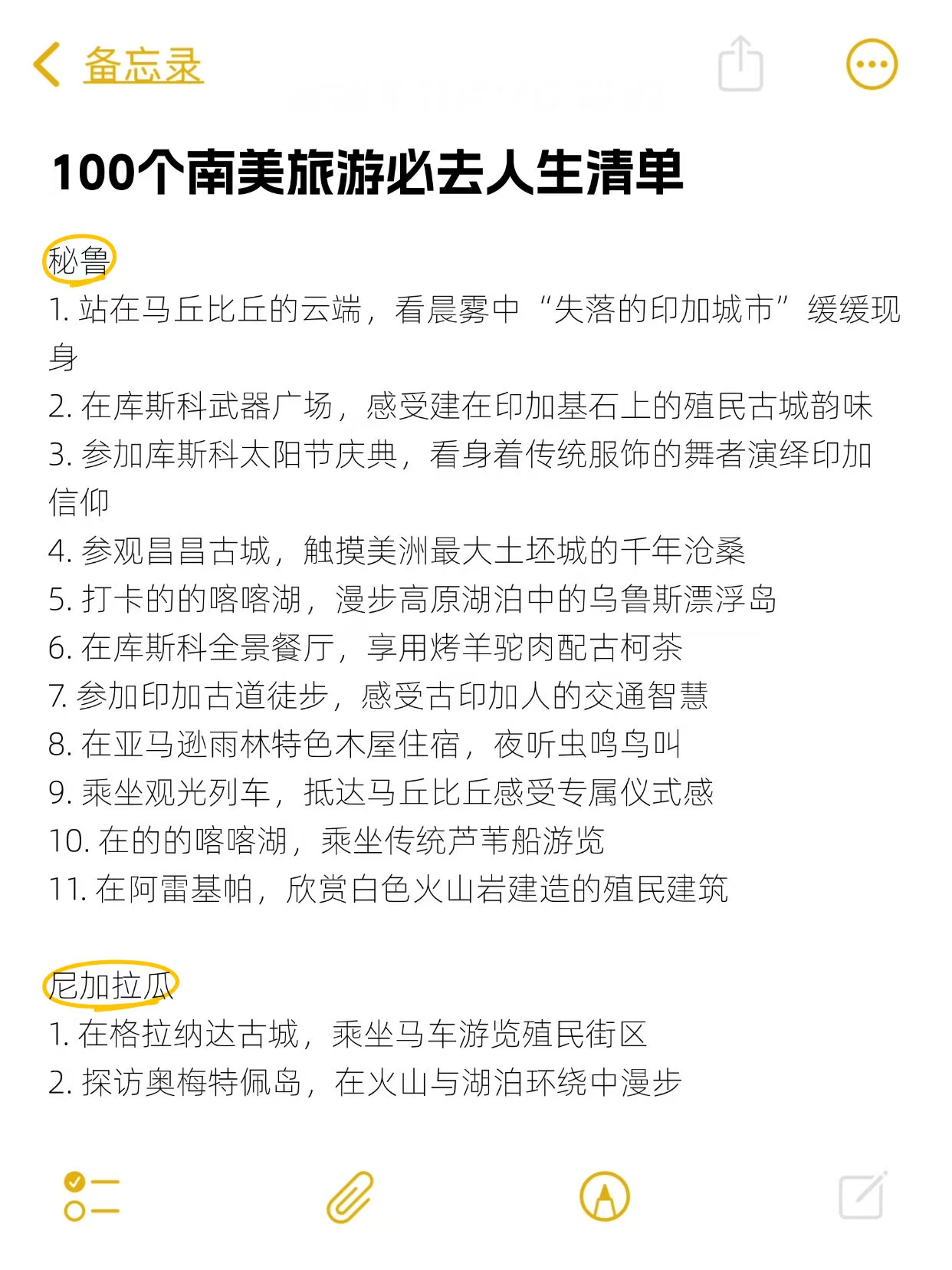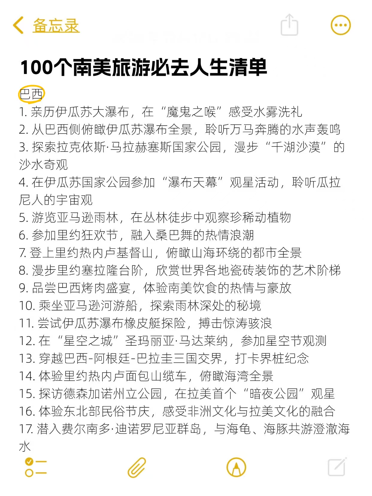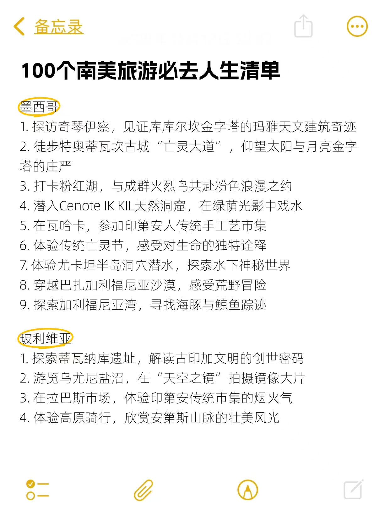 从神秘的玛雅金字塔到狂野的亚马逊雨林🌴,从热情的里约狂欢节到静谧的阿塔卡马星空🌌,南美把自然奇观、人文历史和异域风情揉成了一场极致的梦,这100个体验,少做一个都觉得亏!