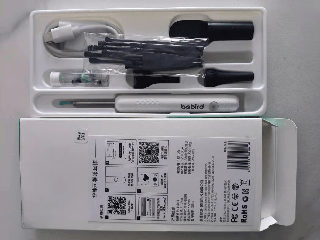 这款蜂鸟R1整体小巧,简约白的设计,方便携带,机身中间有波点设计,握感舒适。赠送的小配件很多,有数据线、替换耳勺套,棉签,耳套。连接简单,看着说明书就能操作。像素800w,能看得到耳道里的结构,放大看会模糊,看久后会眩晕。软硅胶头的设计掏耳朵也不会伤耳道,整体比较舒适。不过电池容量只有180mAh,续航时长半小时左右。