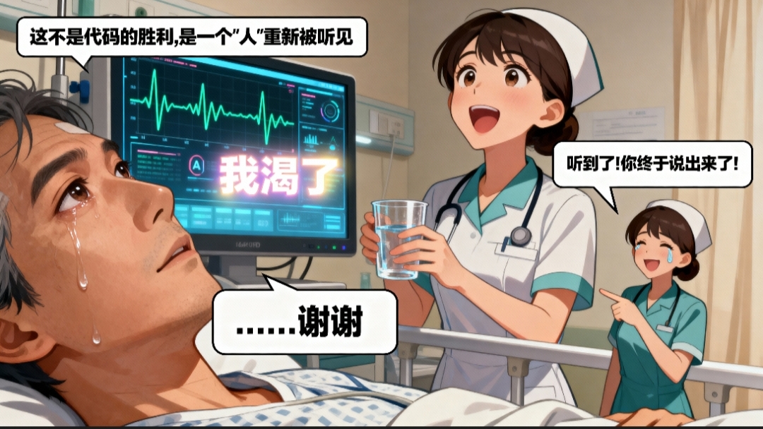 这才是脑机接口的第一个撕裂感。它不是为了让健全的人飞得更高,而是为了让折翼的人重新站立。它不是通往神坛的捷径,它只是那根重新连接“灵魂”与“世界”的线。那些困在失语、瘫痪躯壳里的意识,他们不是数据的试验品,他们是等待被“听见”的活生生的人。