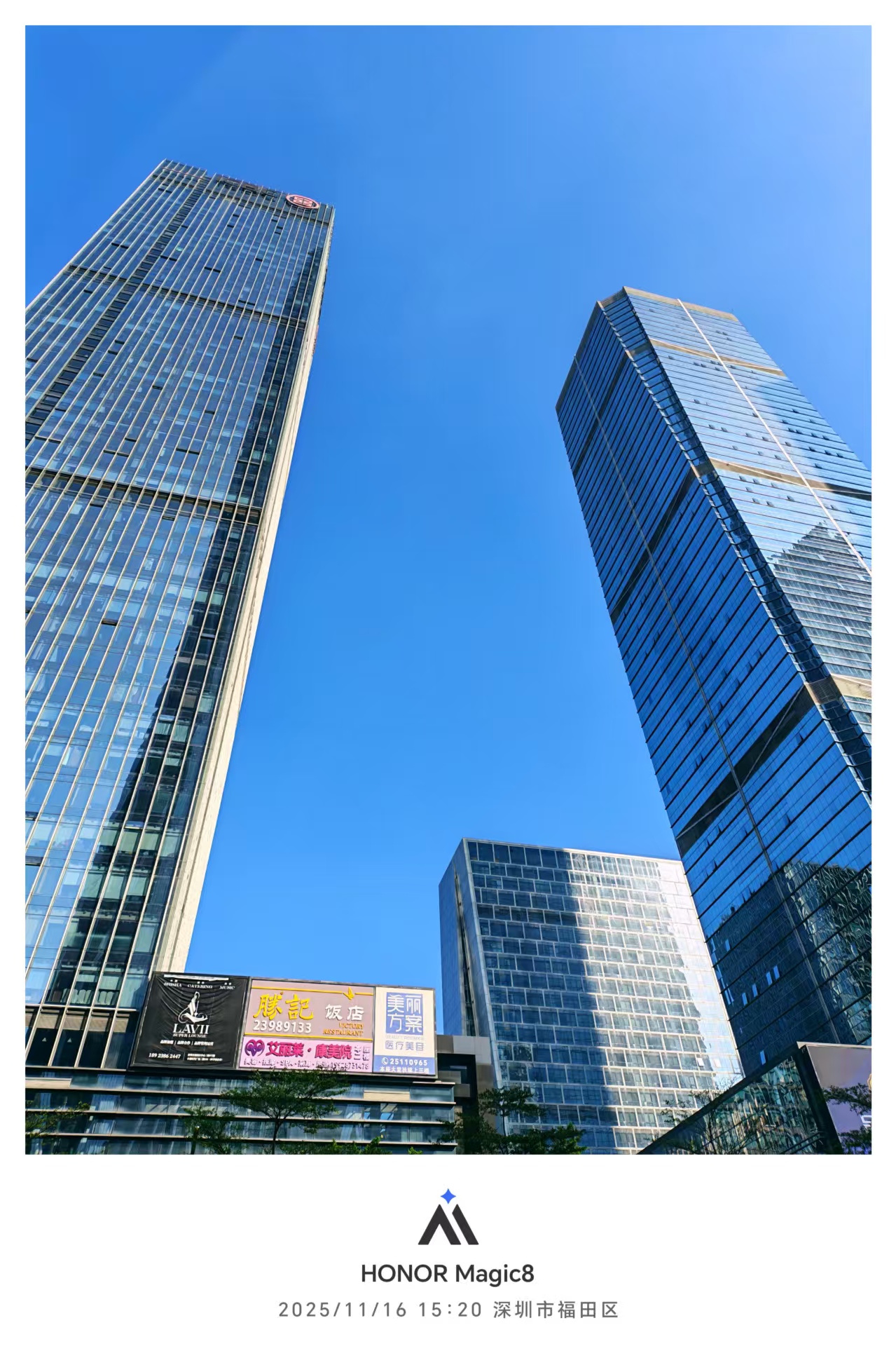 |外观手感:紧凑舒适,细节贴心尺寸与握持感:其采用 6.58 英寸屏幕,机身三维为 157.12mm×74.03mm×7.95mm,重量约 205g,相比前代更紧凑轻盈。1.18mm 四面超窄边框搭配大 R 角设计,不仅视觉上屏占比拉满,还让单手握持毫无压力,彻底摆脱了大屏旗舰的笨重感,通勤时单手操作或日常收纳都很方便。|颜值与防护:荣耀 Magic8 是一款主打均衡实用的标准版旗舰,旭日金配色极具亮点:以浅金到暖橙的渐变呈现朝霞般灵动质感,AG 磨砂工艺带来细腻手感且不易沾指纹,阳光下泛着碎金光泽,搭配方圆宇宙影像模组与金属中框,科技感与时尚感兼具,还显肤色友好。|屏幕显示:护眼与观感兼顾核心素质出色:这块 1.5K OLED 直屏分辨率达 2760×1256,支持 120Hz LTPO 自适应刷新率,既能保证刷信息流、玩游戏时的流畅感,又能智能调节帧率降低功耗。全局亮度 1800nit,HDR 峰值亮度更是高达 6000nit,即便正午强光下看导航、刷视频,屏幕内容也清晰可见。同时还有 10bit 色深和 DCI-P3 广色域加持,色彩过渡细腻,搭配杜比视界认证,观影时画面层次感十足。|护眼能力拉满:它支持舒适模式下 4320Hz 超高频 PWM 调光,中高亮度切换为三扫类 DC 调光,还获得德国莱茵全局护眼 5.0 认证。长时间使用手机时,眼部疲劳感会明显减轻,深夜躺卧刷手机也不易出现眼睛干涩刺痛的情况,对高频用机人群十分友好。|性能续航:旗舰级性能,续航无焦虑性能强悍且稳定:标准版直接搭载第五代骁龙 8 至尊版,台积电第三代 3nm 工艺让安兔兔跑分轻松突破 410 万+,实测能流畅运行各类大型游戏。比如《原神》全高画质运行半小时帧率近乎平稳,仅复杂场景有 1 - 2 帧波动;《王者荣耀》120 帧模式下平均帧率达 119.5fps,且机身发热集中在背部中上区域,中框仅微微发热,散热调校出色。日常同时挂多个办公软件、社交 APP 和游戏,后台驻留半天也能快速唤醒,无卡顿或重新加载问题。|续航充电双给力:7000mAh 超大电池是续航核心优势,重度使用一天(含 2 小时刷视频、1.5 小时游戏等)后仍剩 20% 左右电量,轻度使用甚至能撑一天半。充电方面,90W 有线快充 45 分钟即可充满,搭配 80W 无线快充,无论是早上快速补电还是睡前随手充电,都能满足需求,且 YOYO 智能充电会自动暂停到 80% 以保护电池。|影像表现:全焦段覆盖,AI 加持出片稳荣耀 Magic8 的影像配置在同价位极具诚意,5000 万主摄 + 5000 万超广角 + 6400 万潜望长焦的组合,实现了全焦段覆盖。主摄带 OIS 光学防抖,白天拍摄色彩还原自然,细节丰富,大光圈还能拍出自然的背景虚化效果;超广角镜头视角广阔,拍摄风景、建筑时能容纳更多画面,且畸变控制优秀,无明显画面拉伸。最亮眼的是 6400 万潜望长焦,支持 3 倍光学变焦和 OIS 防抖,5 倍焦段拍人像仍有出色质感。夜间用长焦拍远处路灯、招牌时,噪点控制到位,亮部不过曝、暗部细节清晰。再加上荣耀 AiMAGE・防抖引擎,手持拍摄时能精准应对不同场景抖动,夜景和弱光环境下也能拍出清晰稳定的照片,无需后期修图就能直出。荣耀 Magic8 的 AI 追色功能适配日出日落全场景,实用又出片。阴天雾蒙蒙的原片,一键套用 “暖调夕阳” 预制色调,瞬间染上落日金光,暗部细节也清晰保留。搭配全焦段镜头与 AiMAGE 引擎,日出霞光、日落橘红与云朵金边都能细腻呈现,无需复杂修图,随手拍出朋友圈大片。蓝调时刻拍摄,切换 “浪漫蓝调” 模式,能精准还原天空深邃感,打造电影级氛围。还可提取参考图色彩自定义追色,调色强度可微调,避免过饱和。|系统交互:智能流畅,互联便捷该机搭载 MagicOS 10,系统以 “通透感” 为核心,锁屏的呼吸感、桌面的悬浮感都让交互更自然。底层有 OS Turbo X 智能体和蜂鸟架构加持,弱网下直播恢复速度提升 42%,抢购时端侧操作速度提升 21%,且长期使用能保持持久流畅。作为首批搭载 MagicOS 10 的机型,荣耀 Magic8 标准版的系统体验迎来显著升级。该系统以 “通透感” 为设计核心,从细节处优化交互体验:锁屏带有随指尖滑动的呼吸韵律,桌面布局悬浮轻盈,图标经重新绘制更具空间感,天气插件则模拟真实环境呈现沉浸视觉。整套设计围绕 “自然交互” 展开,让每一次操作都如呼吸般顺滑无负担,既带来清爽的视觉感受,也让使用过程更显轻松惬意。互联方面表现突出,支持与苹果、安卓、鸿蒙、Windows 等全平台设备互联。针对不同系统用户提供贴心换机方案,比如支持苹果 USB 有线克隆与 iCloud 同步,行业首发鸿蒙 NEXT 换机克隆,还能无缝迁移安卓用户的微信 / QQ 聊天记录,换机过程无后顾之忧。此外 1TB 版本支持北斗卫星短信,户外探险或无地面网络时可应急通信。|总结:荣耀 Magic8 作为标准版旗舰,整体表现 “恰到好处”,核心体验拉满且与 Pro 版差距小。外观质感出众,机身握持舒适,内置同级罕见的 7000mAh 超大电池与全焦段影像系统;屏幕显示效果出色,搭配行业领先的全链路护眼方案,兼顾观感与健康。系统方面,MagicOS 10 更优雅流畅,底层依托第五代骁龙 8 至尊版的强悍性能,辅以 AI 智慧调度与全设备互联能力,既保障了运行流畅度,又提升了多场景使用便捷性,全方位满足用户日常、娱乐等各类需求,是一款均衡实用的旗舰之选。