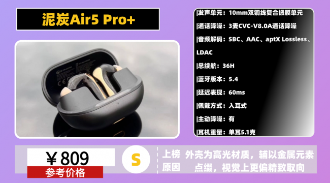 4、泥 炭A ir5 Pro+蓝牙耳机