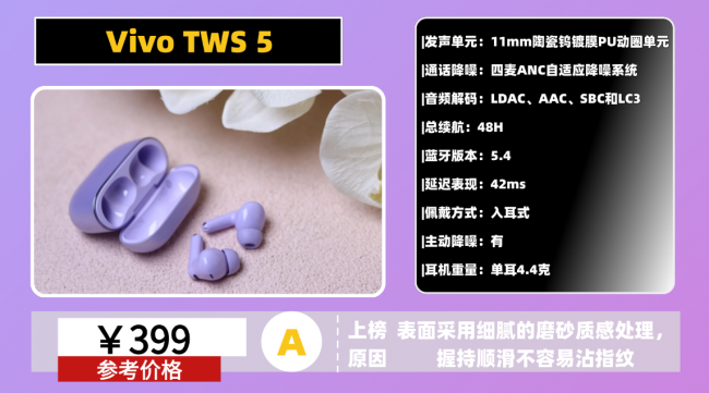 优势2:音质方面搭载10mm超线性复合振膜动圈单元,并配合前腔声学结构进行调校。低频量感充足,鼓点表现清晰但下潜深度略显克制;中频人声位置适中,解析度表现稳定,人声与伴奏之间的层次感较为清楚;高频延展顺滑,不容易出现明显刺耳感。降噪方面支持自适应ANC方案,最高约-50dB降噪深度,并提供多种降噪模式以适应不同环境。连接方面支持蓝牙6.1协议,连接稳定性表现正常。续航方面,耳机单次约8小时,搭配充电盒综合续航约45小时,日常通勤或长时间使用基本能够满足需求。