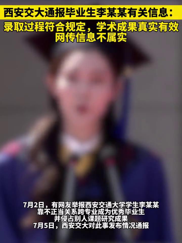 近期,西安交通大学一则关于毕业生李某某被传为“学术妲己”的舆情风波引起了广泛的社会关注。在这起事件中,西安交通大学及时采取行动,成立工作专班进行全面调查,并最终发布了情况通报,明确了事件的真相。本文将就此事件进行深入的探讨和分析,以期为读者提供全面、客观的信息。事件起源于网络上对西安交大毕业生李某某的质疑和指责。有网友质疑李某某的学术成果是否真实有效,以及其录取过程是否存在违规行为。同时,还有网友指责李某某的指导教师存在师德师风问题,将其称为“学术妲己”。这些质疑和指责在社交媒体上迅速传播,引发了广泛的讨论和关注。