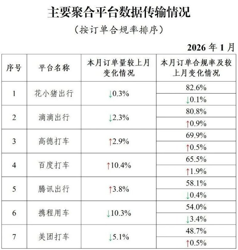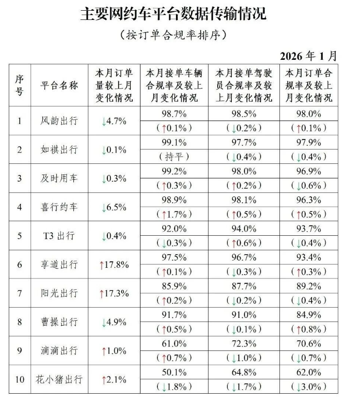 2月13日,交通运输部网约车监管信息交互系统发布2026年1月份网约车行业运行基本情况。