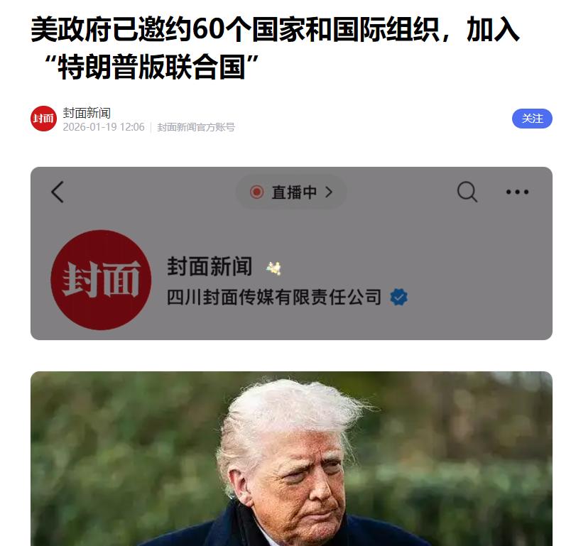 信息来源:美政府已邀约60个国家和国际组织,加入“特朗普版联合国”