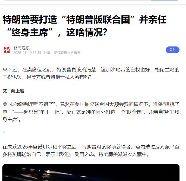 信息来源:特朗普要打造“特朗普版联合国”并亲任“终身主席”,这啥情况?