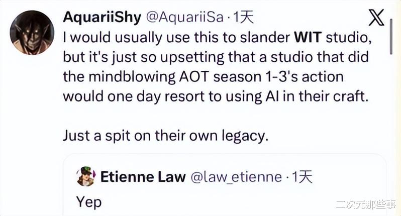 在如今这个时代,Ai动画已经很流行了,相信大家也在各个视频平台刷到过各种Ai动画。而在近日,日本知名动画公司,曾打造《进击的巨人》前三季、《间谍过家家》等现象级作品,被国内观众称为“霸权社”的日本WIT STUDIO动画公司却因为使用Ai生成动画内容陷入舆论危机。