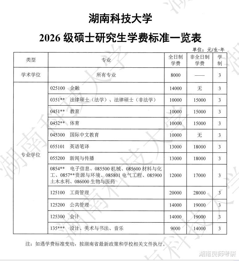 湖南科技大学26考研收费标准