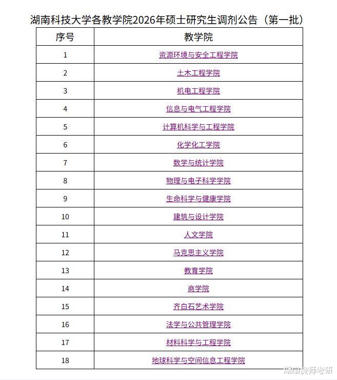 湖南科技大学26考研调剂公告