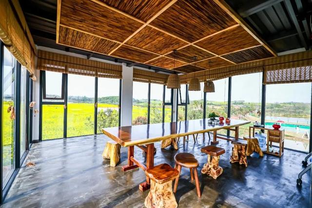 二楼的超大露台更是包揽这春天的景色,就着咖啡,啜一口春日味道。全落地窗的茶室让户外风景一览无余,初春还是灿烂的油菜花田,此时便是这幅青翠欲滴的景象,不一样的韵味,有着大自然独特的美。
