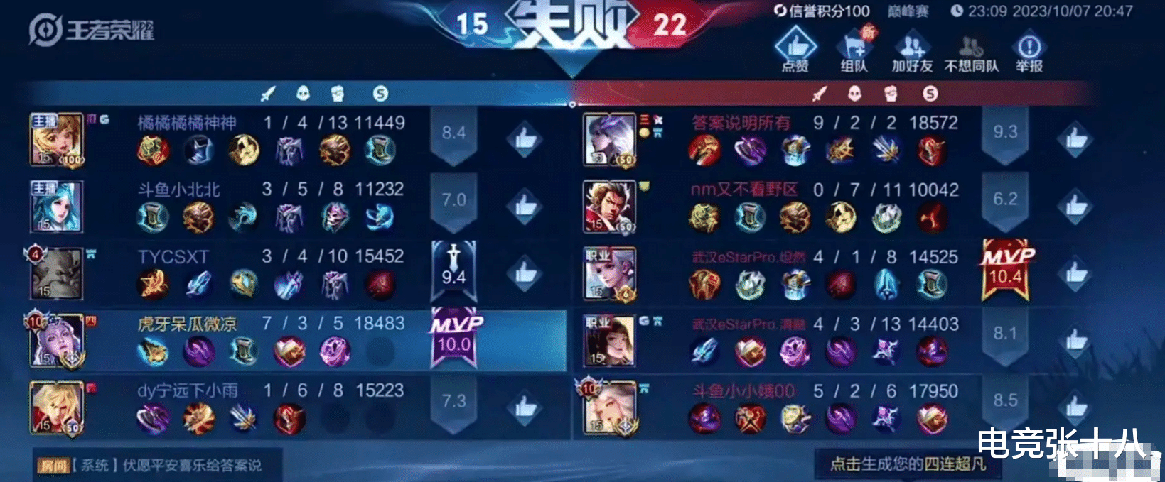 而微凉使用的露娜,在比赛中稳打稳扎的拿下了多次人头,甚至还带队打赢了一波小规模团战。但无论是执行力还是对线经验,都明显是对面更加出色。虽然微凉个人实力不错,但在对面稳稳滚起雪球的情况下,微凉还是难以带队,最终只能饮恨输掉了比赛。但从内容来看,微凉并不是没有击败对手的机会,反而队伍还偶尔打出了优势,只是因为经验不足,导致微凉这边一直没能抓到机会,被estar队一直不断的推进,最终输掉了比赛。