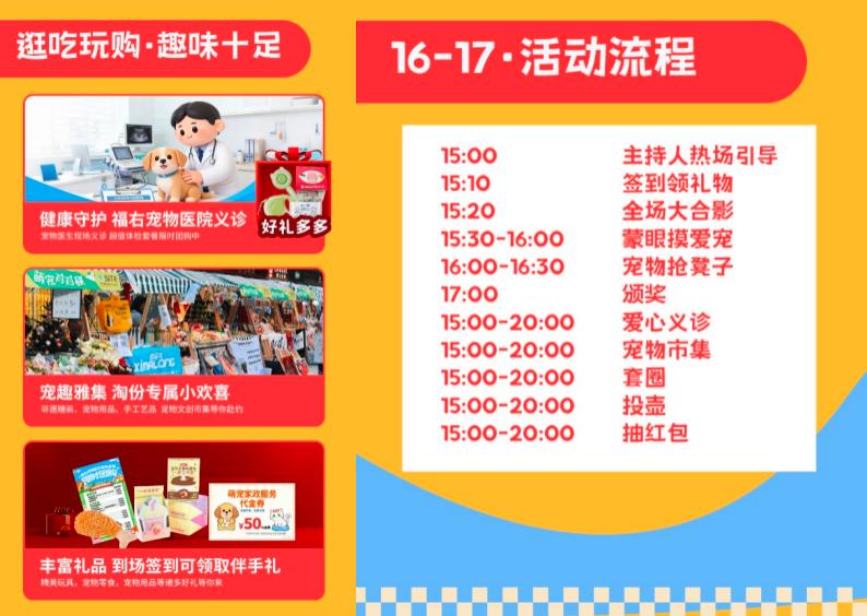 本次活动突破传统消费场景,精心策划四大主题板块,提升市民参与感与街区文化内涵:“萌宠社交派对”:设置宠物趣味游戏、专业义诊、互动抽奖,打造友爱温馨的宠物社交平台。
