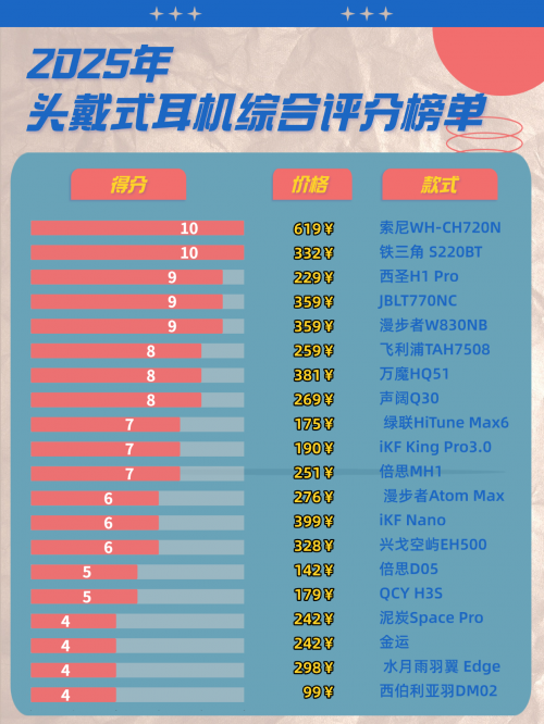 耳机这玩意儿最讲究 “耳朵收货”,别人夸上天的款,你戴着压得太阳穴疼、听着音质糊,再贵也是白花钱。为了帮大家省点纠结的功夫,我特意整理了2025头戴式耳机性价比排行榜前十名。感兴趣的朋友接着往下看,说不定你找了半天的 “心头好”,就在这儿呢!
