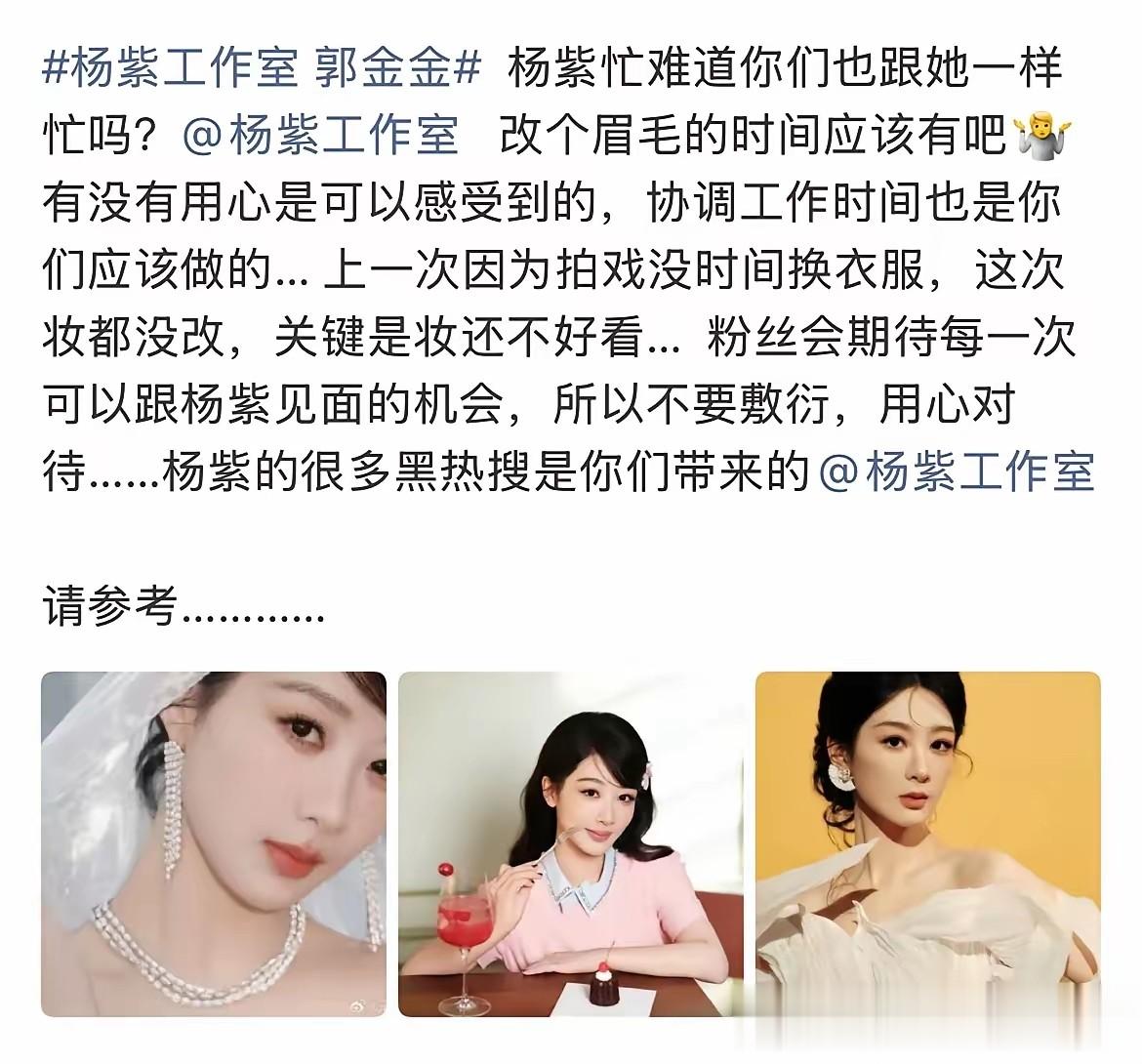 一个连基础妆造都做不好的团队,一个对粉丝合理诉求全程装死的团队,最终消耗的,只会是杨紫自己的口碑和灵气。