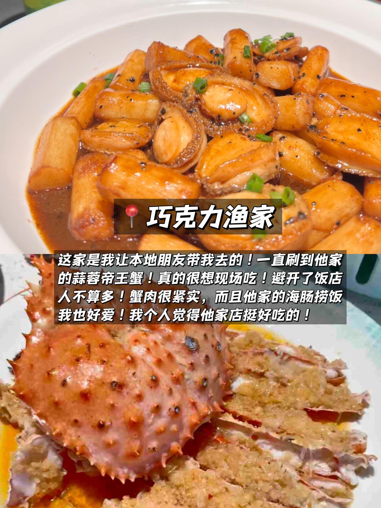 这家是我让本地朋友带我去的!一直刷到他家的蒜蓉帝王蟹!真的很想现场吃!避开了饭店人不算多!蟹肉很紧实,而且他家的海肠捞饭我也好爱!我个人觉得他家店挺好吃的!