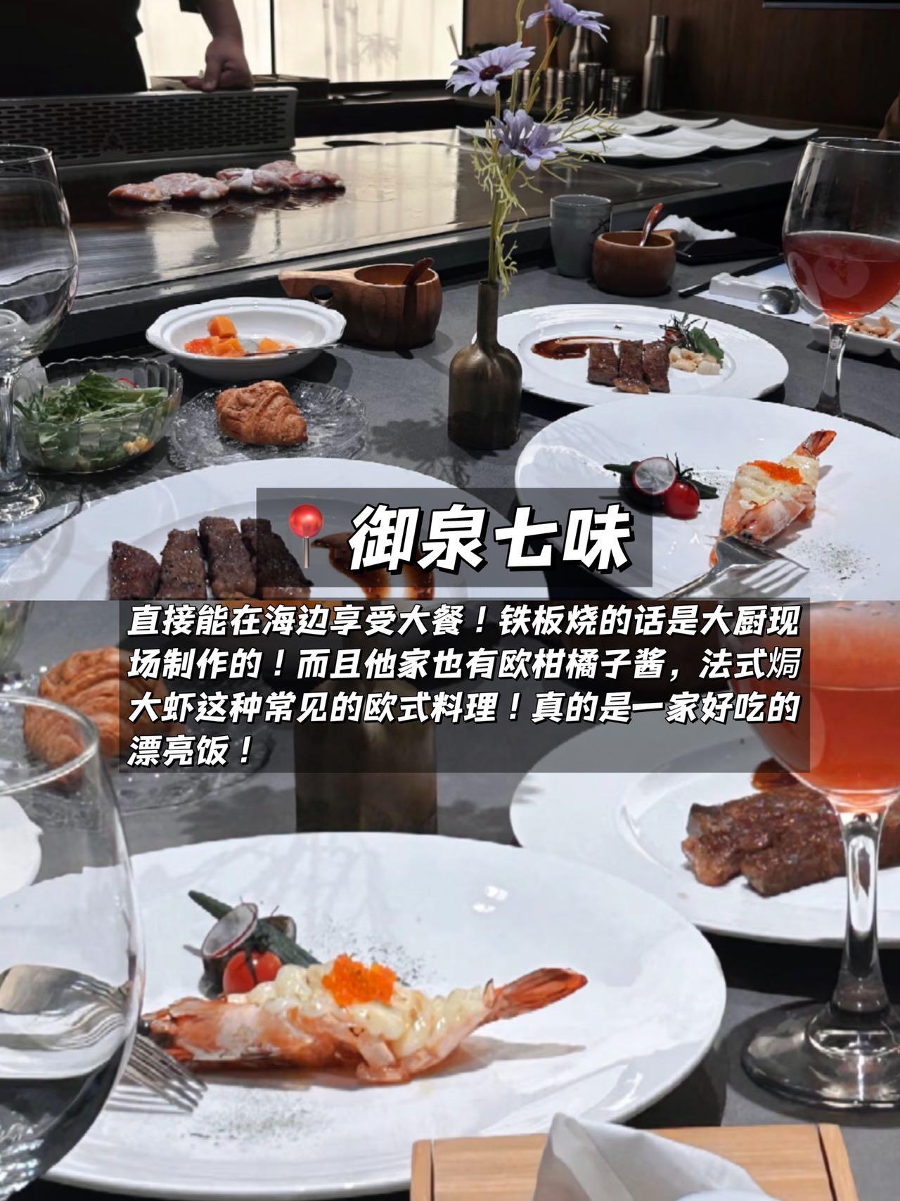 直接能在海边享受大餐!铁板烧的话是大厨现场制作的!而且他家也有欧柑橘子酱,法式焗大虾这种常见的欧式料理!真的是一家好吃的漂亮饭