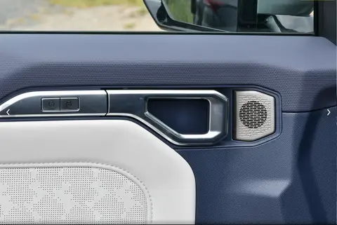 初见这台车时,我在停车场足足多绕了两圈——不是找车,而是被它的“颜值杀”钉在原地。前保时捷设计总监操刀的“方盒子”造型,没有一丝多余曲线,硬朗得像从越野电影里开出来的主角。家族式多边形进气格栅里,蜂窝纹理藏着细腻质感,粗壮的镀铬饰条一搭,气场直接拉满;两侧LED大灯棱角锋利,和格栅连为一体,配上保险杠上的银色护板,仿佛在说“我不好惹”。