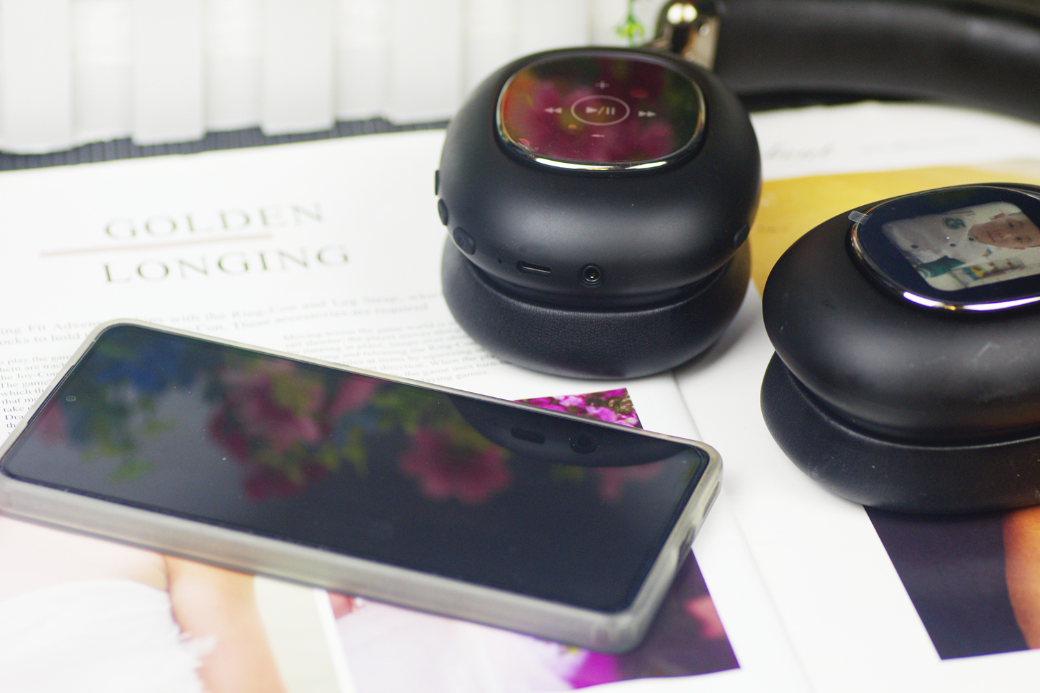 开箱第一眼,两块OLED灵动屏通过磁吸方式吸附在耳罩外侧,镀铬金属镶边包裹,质感远超市面上的灯带耳机,没有廉价的炫光感,反而透着科技潮品的精致。磁吸拆卸的体验堪称丝滑,轻轻一拔即可分离,装上时自动吸附定位,日常使用中完全不用担心脱落,我特意做了跑步、摇头测试,屏幕稳固性拉满。