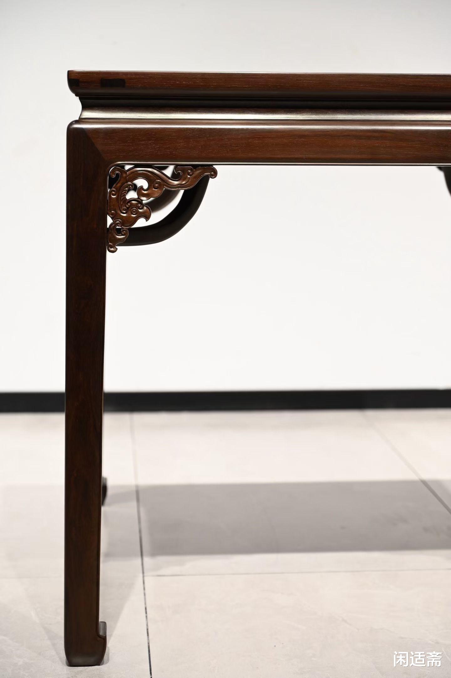 桌体整体繁简得当,光素部位凸显木材天然之美,雕饰部位尽显匠心巧思,将木材之珍、雕纹之精、结构之稳完美融合。置于厅堂,可作为宴饮、会客的核心器物,彰显府邸端庄格调;放于书房,可作为案几、书桌,陪伴文人读书静思、挥毫泼墨;置于茶室,可作为茶桌,搭配茶香,营造静谧雅致的品茶氛围。