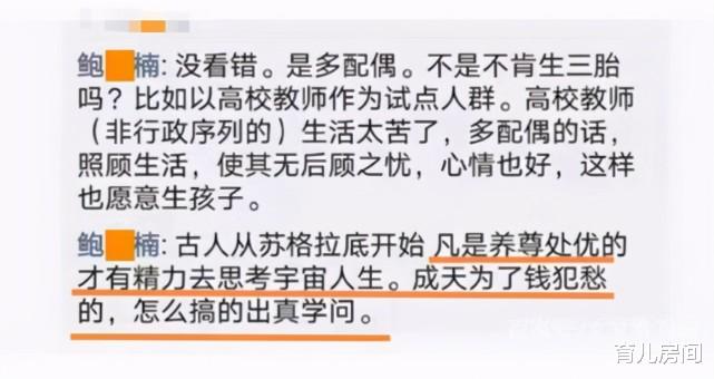 面对网友的抨击,这位学者不但不感觉惭愧,反而兴致大发,继续向众人发表他的“最新观点”——现在国家开放三胎了,一个女性生三胎太遭罪,还不如一个男人娶三个老婆,每个老婆生一个孩子,既响应了国家政策,又能减轻女性生育负担,双赢嘛,就从高校的学者进行试点工作,让他们过更好的生活,才能更好地工作嘛。