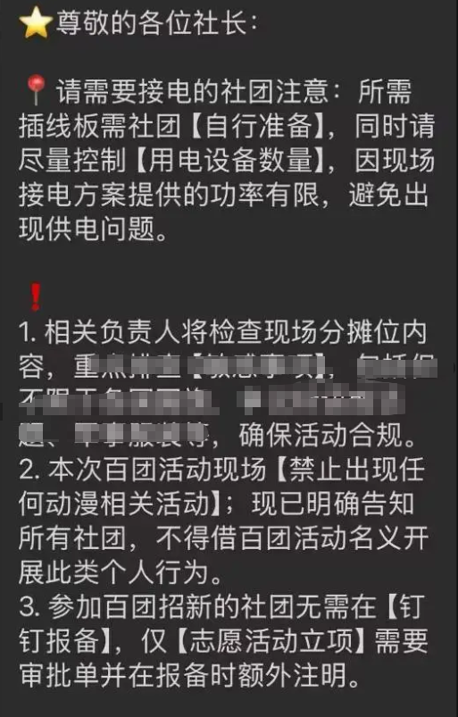 这个学长认为,在关键环节,现场【禁止出现任何动漫相关活动】,这对校内以ACG为核心的动漫社团来说无疑是打击。甚至他怀疑这是一些人恶意为之,故意搞一刀切。因为不理解动漫二次元,而讨厌动漫二次元,并且禁止动漫二次元。