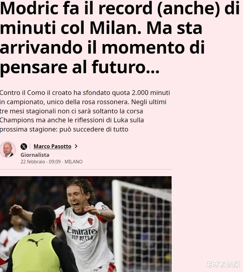 最后,米兰体育报表示,同样不排除莫德里奇在今年夏天之后选择退役的可能性。