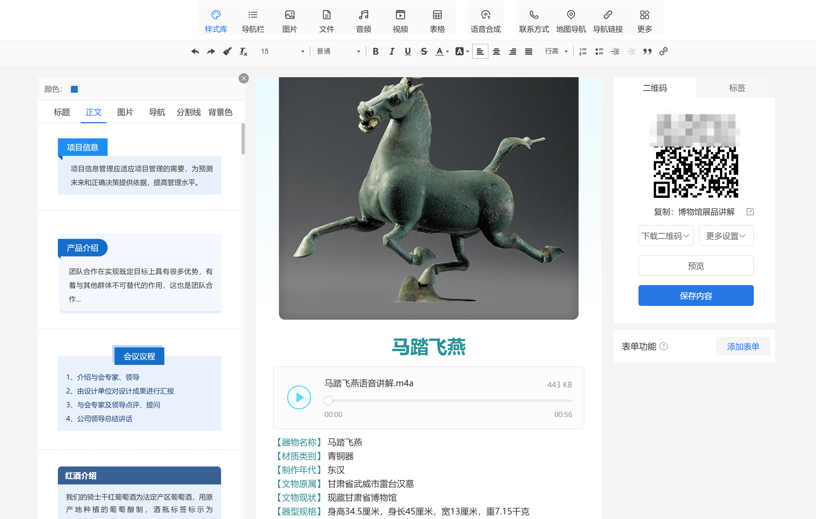 应用优势:在博物馆展品旁、艺术展览介绍牌、音乐会节目单上设置二维码,观众可扫码收听导览解说、创作背景访谈、演出幕后花絮,极大丰富观展体验。