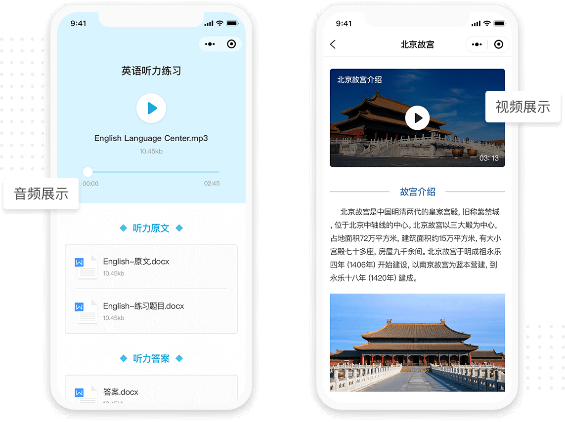 可容纳宣传片、课程讲解、产品演示、音乐专辑、会议记录、导览解说等多种形式。