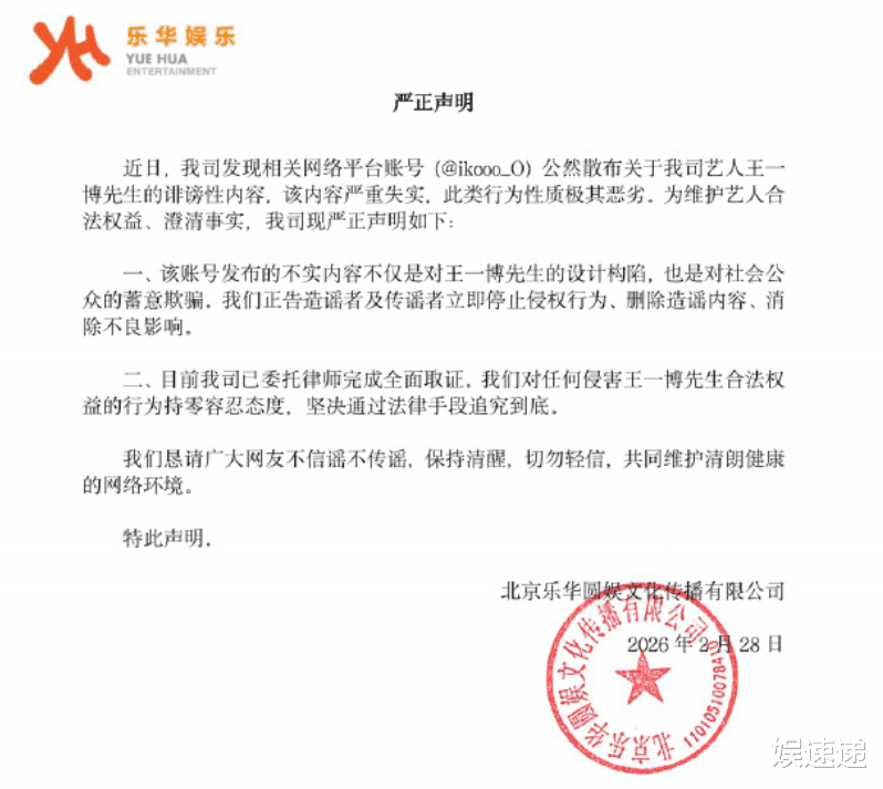 在热搜屠榜半小时后,乐华贴出硬核辟谣声明,明确表态:聊天记录是伪造的,已经找好律师固定证据了,接下来就是硬刚到底追责造谣源头。