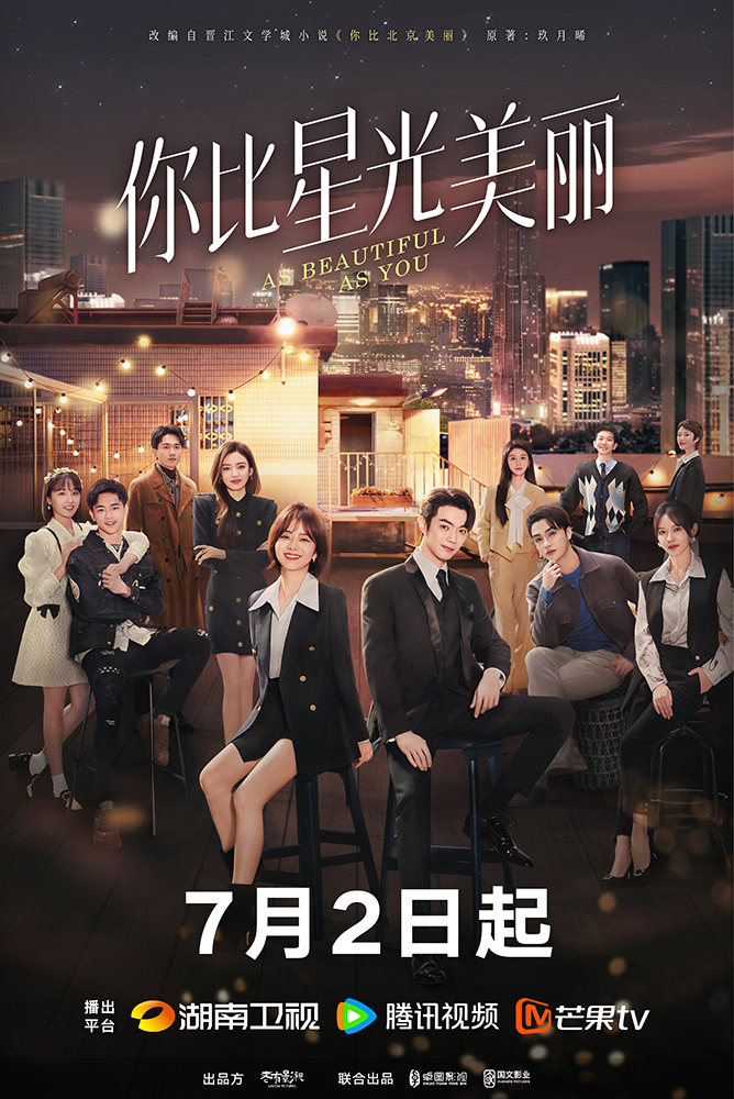 由老有影视出品,卓圆影视、国文影业联合出品的《你比星光美丽》今日官宣定档,将于7月2日在湖南卫视、腾讯视频、芒果TV同步播出。该剧改编自玖月晞小说《你比北京美丽》,由陈畅执导,杨千紫任编剧,谭松韵、许凯(排名不分先后,以姓氏拼音首字母排序)、何瑞贤、高寒领衔主演,施诗、吴施乐特别主演,周大为、王伊澜、李雅男特别出演,唐振超、罗泽楷、刘海蓝、罗文泽、崔恩慈、高曼尔主演,敖瑞鹏、马文忠友情出演。讲述了野草创业者纪星(谭松韵饰)遇上野心家投资人韩廷(许凯饰)后照亮彼此人生的职场智性恋双向奔赴的爱情故事。