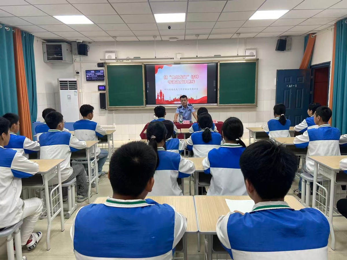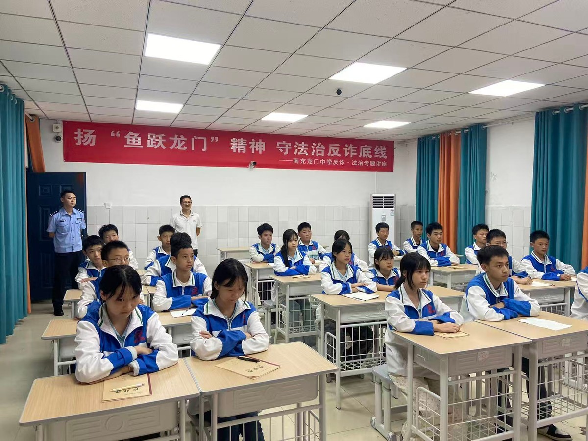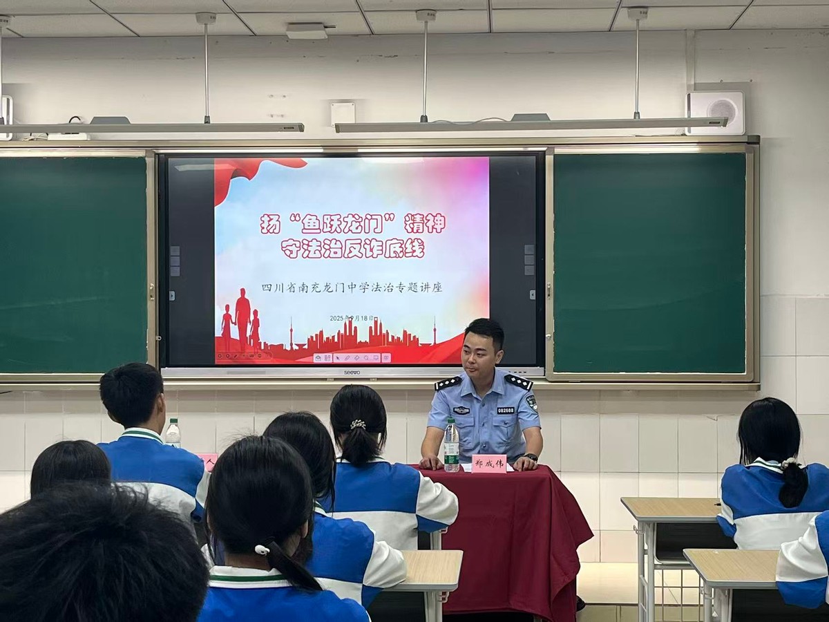为筑牢学生法治思想防线,守护财产安全 “钱袋子”,护航身心健康成长路,9 月 18 日,四川省南充龙门中学举办了反诈法治专题讲座。本次讲座以 “扬‘鱼跃龙门’精神,守法治反诈底线”为主题,同时融入未成年人保护与防欺凌教育。全校学生线上线下同步聆听讲座。