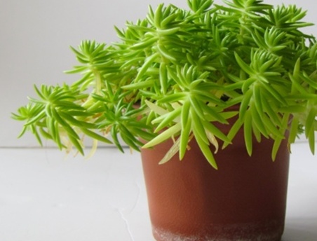 在办公室场景中使用佛甲草做装饰也是很常见的。有个办公室白领分享说,他们在办公室的一面墙上种了一小片佛甲草。刚开始的时候大家都觉得很新鲜,看着那一抹绿色心情都变好了。但是过了一段时间,发现佛甲草有些发黄。经过分析,是因为办公室里的空调温度开得太低了,而且光照也不足。后来他们调整了空调的温度,并且把佛甲草搬到了一个有散射光的地方,过了大概一个月,佛甲草又恢复了生机。