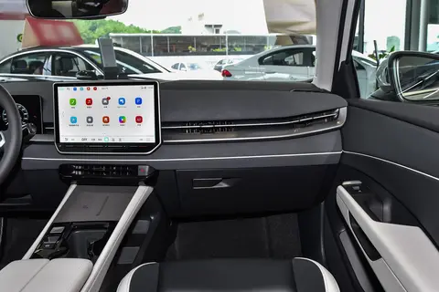 在车辆内饰的升级方面,最显著的改变体现在科技感的全面提升上。整个座舱以三屏联动交互系统作为核心设计理念,其中最为抢眼的是15英寸的大尺寸中控触摸屏,这块屏幕不仅支持多点触控操作,更拥有2240*1260的高清分辨率,无论是屏幕尺寸还是实际显示效果都极具震撼力。值得一提的是,这块显示屏采用了低蓝光技术,在确保画面显示清晰锐利的同时,还能有效减少有害蓝光对眼睛的伤害,为驾乘者提供更加健康舒适的视觉体验。其次配备的是10.25英寸全液晶仪表盘,采用一体化悬浮式设计,整体造型更加纤薄扁平,配合高分辨率显示效果,除了常规的行车信息显示外,还支持AR实景导航功能。此外,车辆还配备了7.11英寸的W-HUD抬头显示系统,这三个屏幕通过智能互联技术实现协同工作,不仅操作界面简洁直观,更将整车的科技氛围提升到了新高度。
