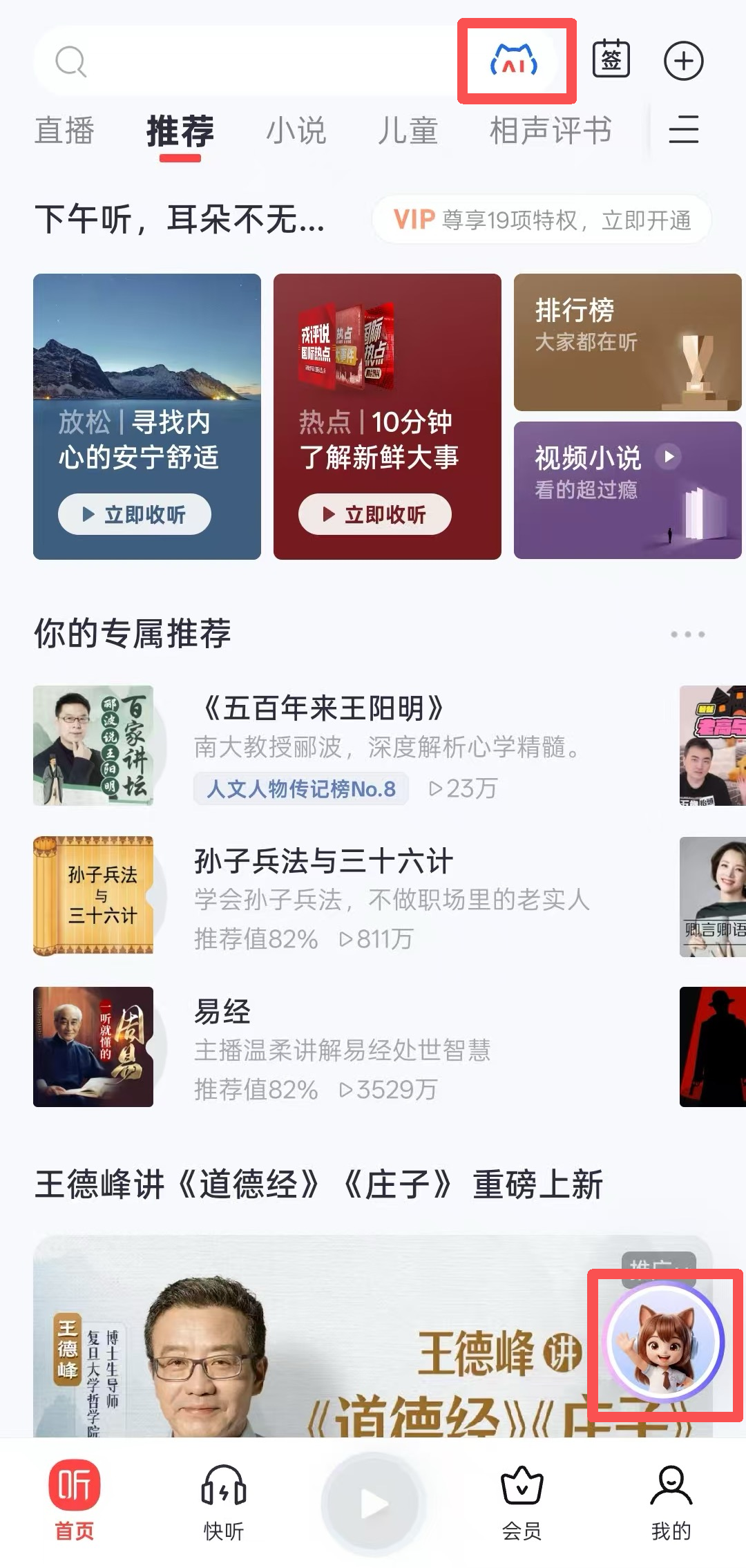 就拿大家常用的喜马拉雅的小雅智能体来说,安卓和iOS的老玩家习惯了先打开App,再点搜索栏旁边的“小雅”图标或右下角的悬浮窗来调用智能体。