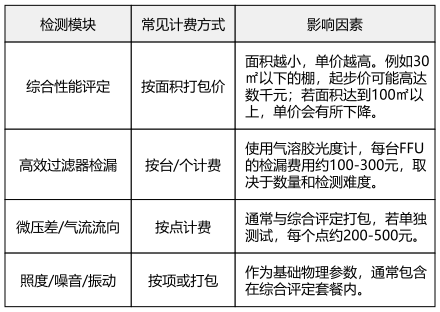 四、检测费用的市场化估算逻辑结合行业内的通行做法,洁净棚的检测费用通常不包含在“建安费”里,而是作为独立的“验证服务”列出。我们可以参考类似消防检测或洁净室综合性能评定的模式进行估算 。
