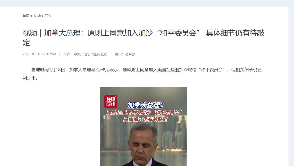 信息来源:视频 | 加拿大总理:原则上同意加入加沙“和平委员会” 具体细节仍有待敲定