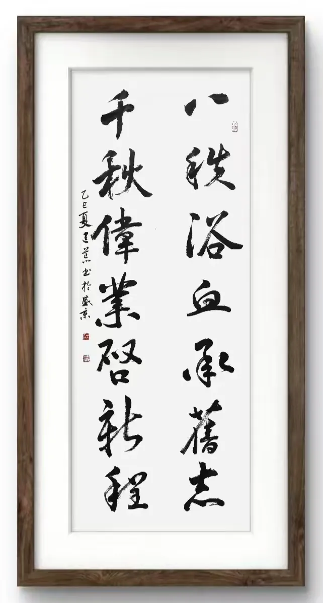 - 多样性与创新性的统一:在创作中,他从不给自己设限。根据不同的题材与情感需求,他能自如地切换笔法与风格。无论是展现军人豪情的“军魂”大字,还是抒发个人情怀的抒情小品,他都能精准拿捏。他不断探索新的表现手法,为传统书法艺术注入了鲜活的现代生命力。