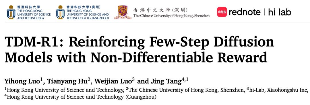 论文标题:TDM-R1: Reinforcing Few-Step Diffusion Models with Non-Differentiable Reward 论文作者:Yihong Luo, Tianyang Hu, Weijian Luo, Jing Tang