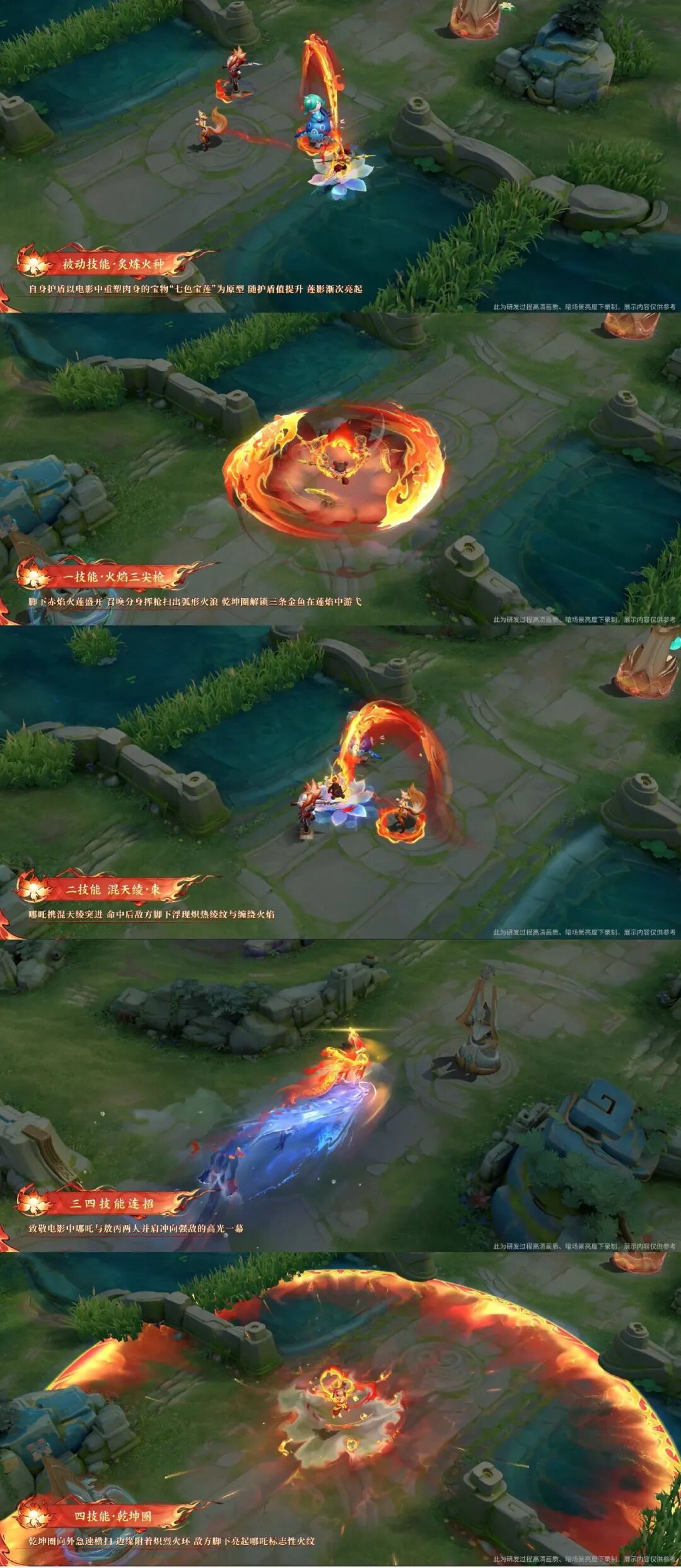 技能表现也还原了一些哪吒电影中的元素,比如被动技能的七色宝莲,三四技能的风火轮变成了龙形态的敖丙,还原了电影中的场景,也算是互动彩蛋了。