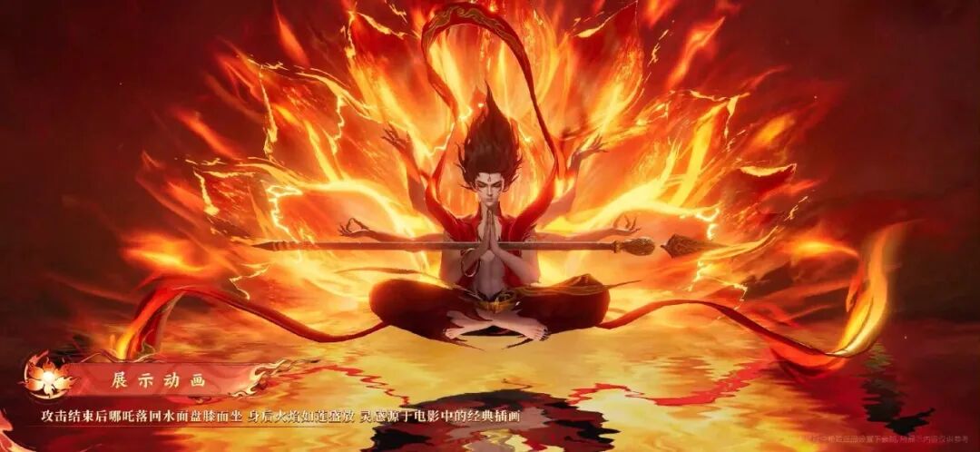 展示动画的时候,出现了电影中的经典插画,也就是六臂哪吒形态。之前一些品牌的联动,也是用到了这个插画。