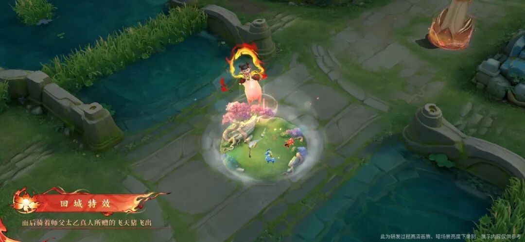 另外比较有意思的是这个回城,融入了好几个电影中的元素,比如太乙真人的坐骑、太乙真人的法宝山河社稷图、以及哪吒自己雕刻的莲藕哪吒等等。