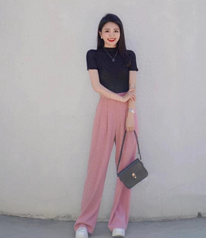 今年不是很流行粉色吗?所以,在这个夏季,你的衣橱里又怎能缺少了一件粉色系单品呢?颜色饱和度比较低的粉色休闲西装裤,它的垂坠感也是极佳的,宽松的裤型,穿起来不仅显瘦还显腿长!