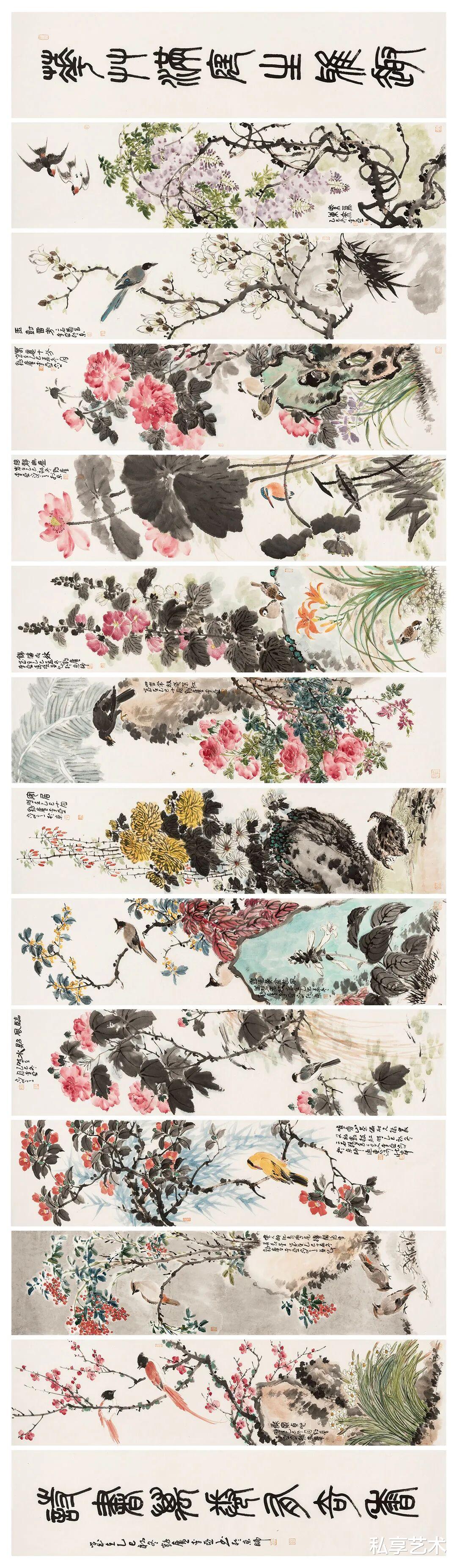 李亚最新创作的《四季花鸟十二屏》,以清雅笔致写尽四时之韵。不事繁缛,不炫工巧,只借花鸟之姿,传递节令的呼吸与天地的节奏。春有紫藤垂露,燕语轻掠;夏见荷风送爽,翠羽点水;秋则桂子飘金,山茶燃霞;冬至梅枝破雪,红果映霜。这些花木禽鸟,不只是视觉的点缀,更是自然心性的流露,是时间在纸上悄然落下的印记。画面构图疏朗,设色温润,留白处尤见匠心——那是观者得以驻足、凝思甚至入画的余地。在快节奏的当下,这组作品如一泓静水,映照出东方美学对“静”与“简”的执着:不喧哗,自有声;不张扬,自生光。四季轮转,在此不是循环,而是一场关于生命秩序与内在安宁的低语。